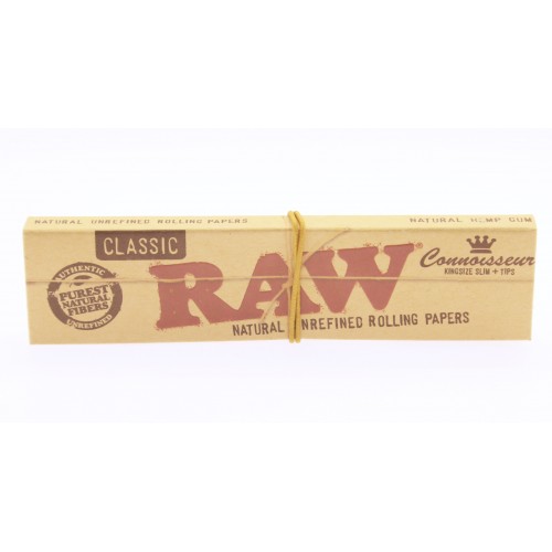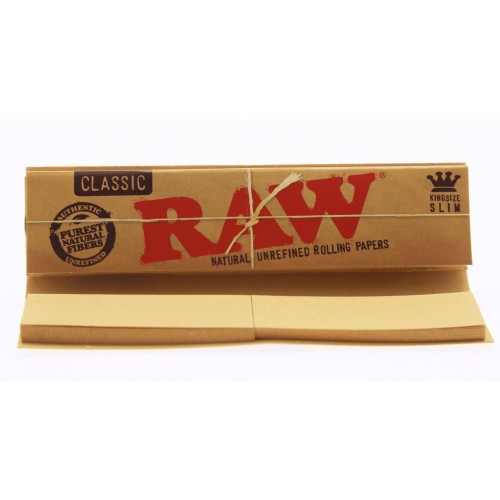 RAW捲煙紙是由不經氯漂白的天然纖維混合物製造。紙張是特薄的半透明淡啡色,燃燒透徹,速度平均且慢。RAW是知名的捲煙紙品牌,以近乎天然的工序生產以降低燃燒時釋出的有害物。RAW產品適合素食者使用。尺寸..